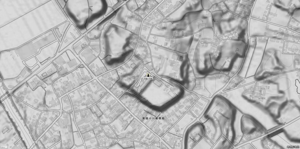 元和 8年(1622)に廃城と なった後には、水戸藩御殿、運送方役所お よび小川稽医館などに利用されてきたことにより、大部分が破壊され、消失している。
