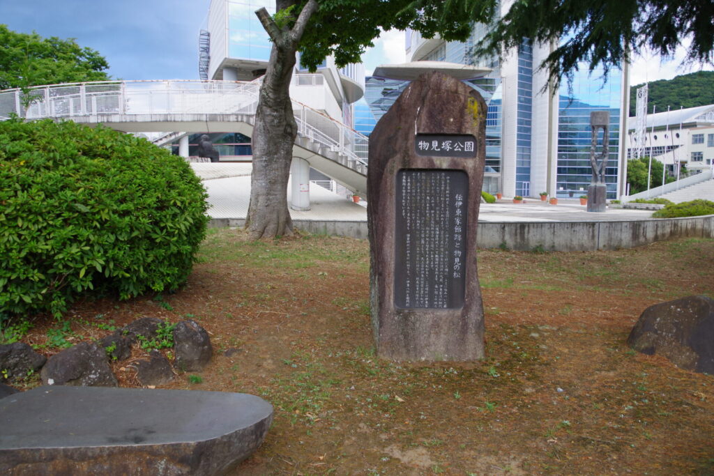 現在は物見塚公園となり、馬上姿の伊東祐親像が置かれています。永くその姿を誇ってきた物見の松は、昭和57年に枯死し、現在はその塚の上に小さな三代目の松が植えられています。