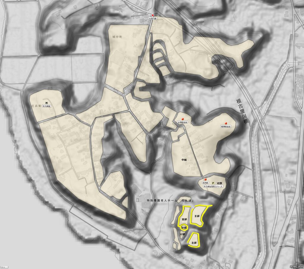 この城は、戦国期に築かれた東国の城の特徴を持ち、本丸がある城山には石垣や天守閣を持たない典型的な遺構を残している。