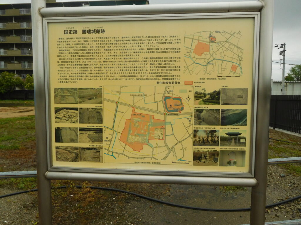 勝瑞城は、室町時代の阿波国守護細川氏及び、その後三好氏が本拠とした城で、県内に残る中世城郭の中では珍しい平城である。