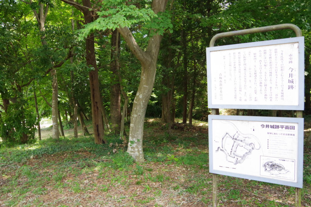 今井氏代々の居館と伝えるこの今井城跡は、面積およそ8500㎡の、二郭からなる単純な連郭式の城跡である。