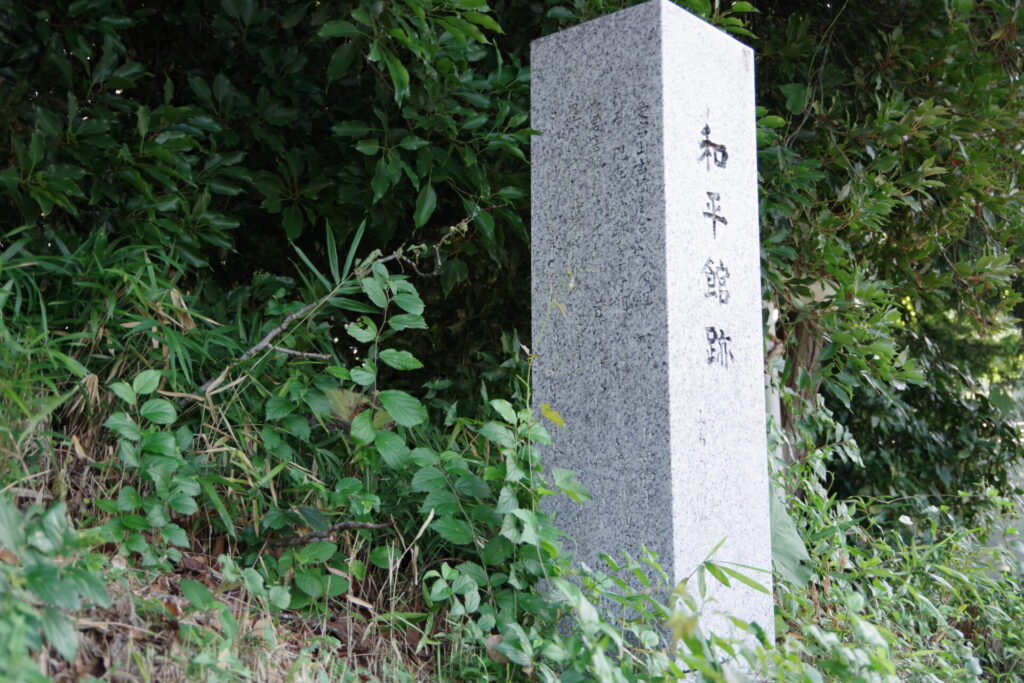 愛宕山古墳を含むこの辺り一帯には、中世和平の館があったと伝えられる。現在、館跡を示す明確な遺構はないが、北面東面ともに崖になった要害地となっており、昔は抜け穴もあったという。