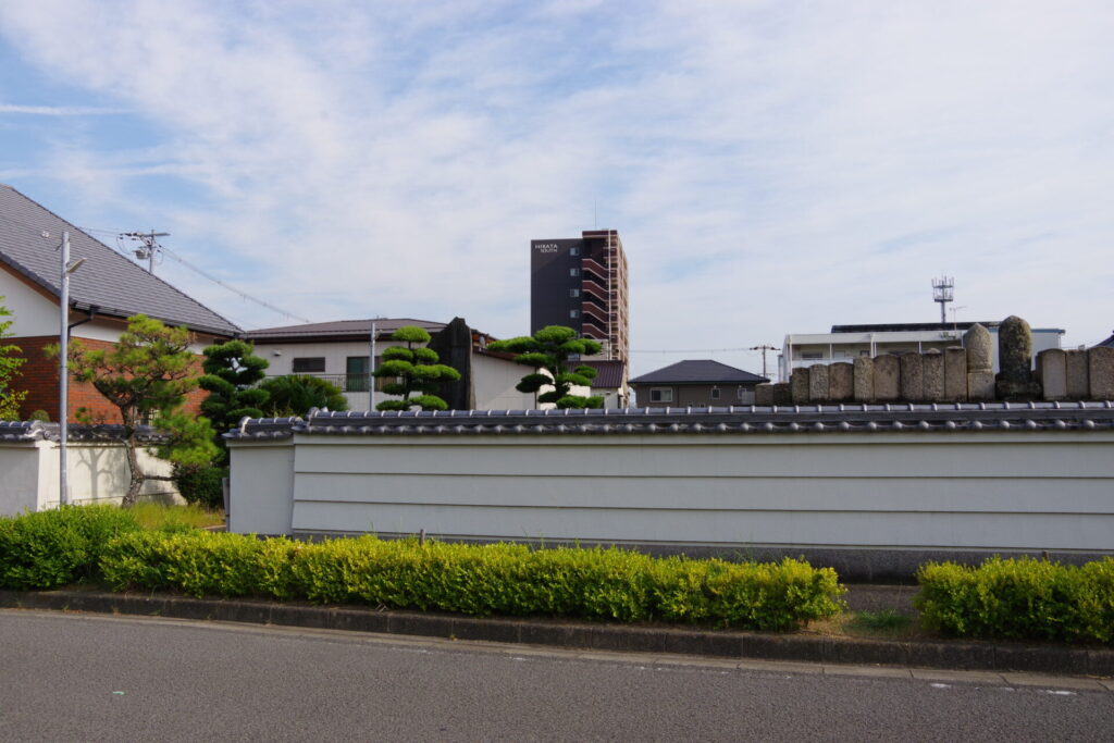 ここ来迎寺は、岡山県高松城、埼玉県忍城とともに日本三大水攻めのひとつに数えられる戦国時代の太田城の本丸跡と伝えられる場所である。