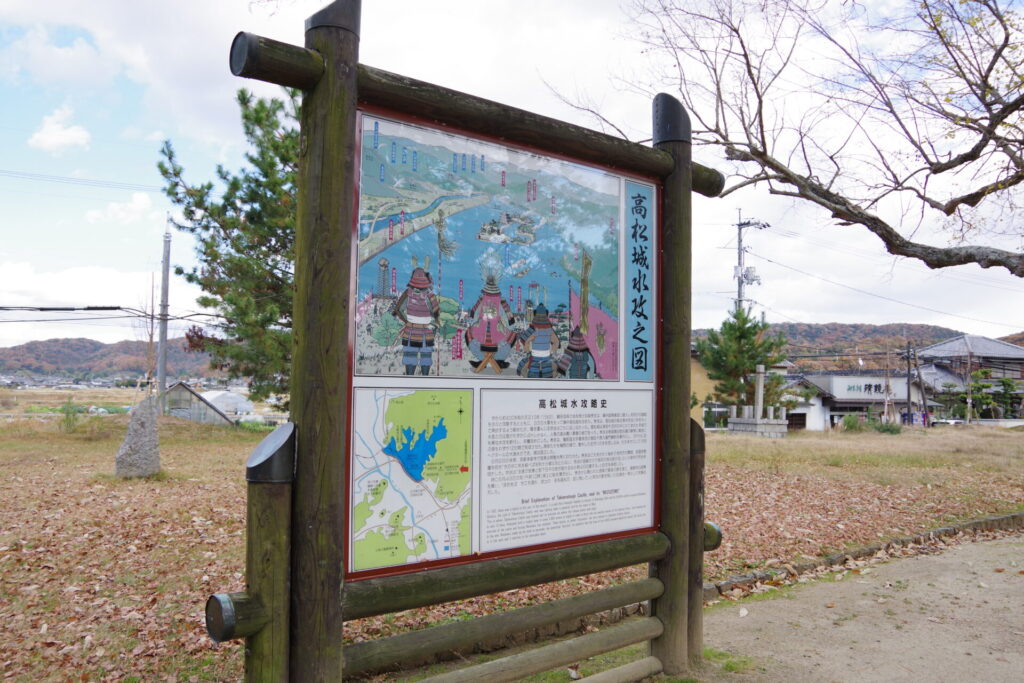 高松城は、備前国に通じる平野の中心しかも松山往来(板倉宿から備中松山城へ至る)沿いの要衝の地にあり、天正10(1582)年の中国の主戦場となった城跡として有名である。