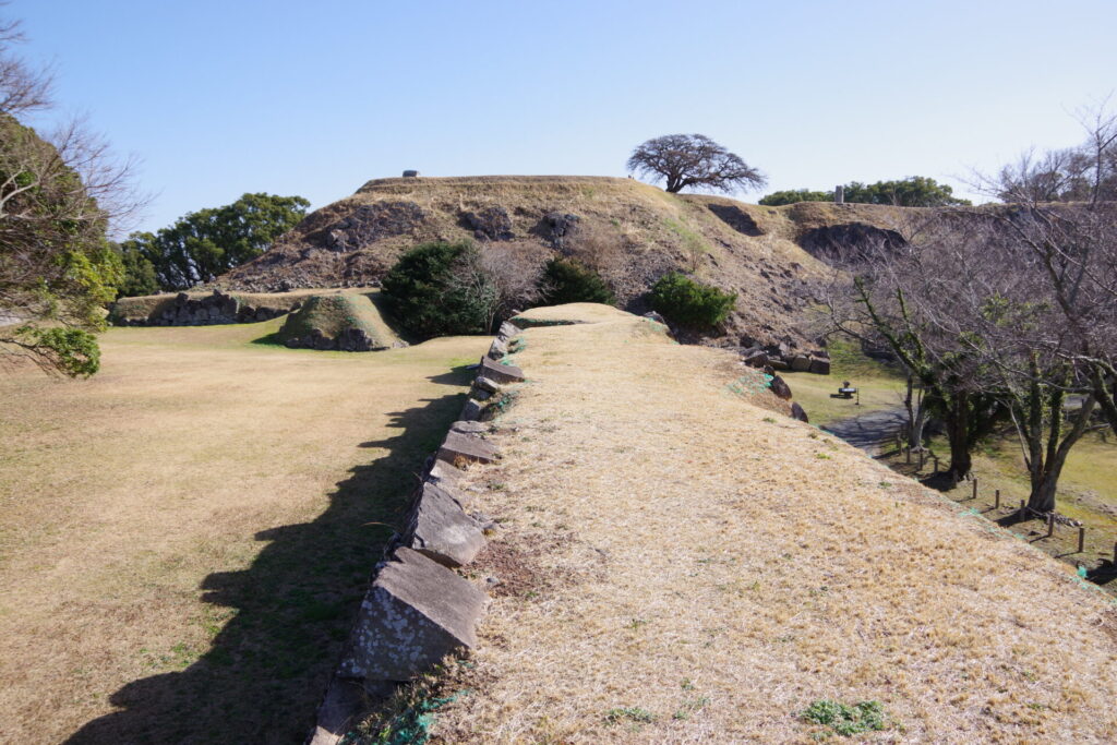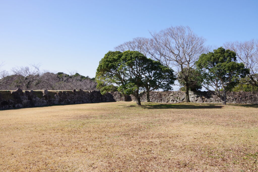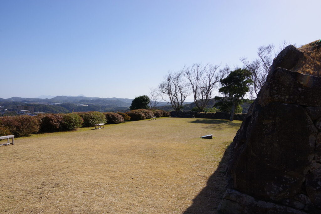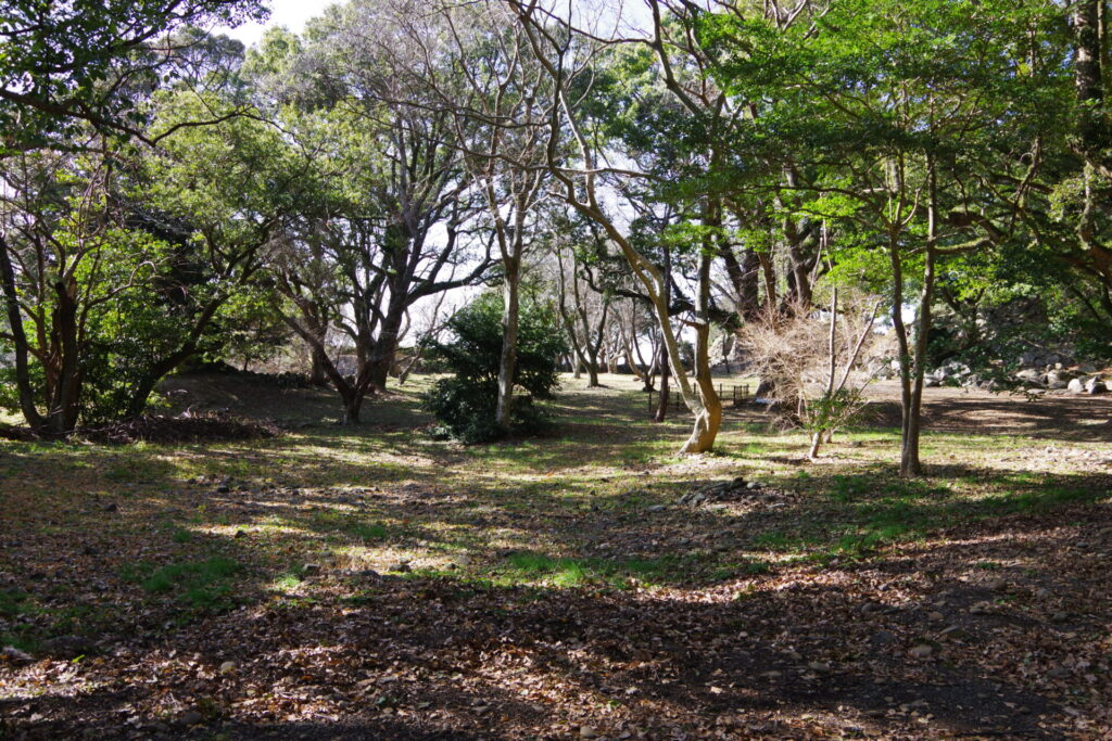 大手口から本丸に通じる重要な曲輪で、本丸周辺を警固する侍が詰めていた場所と考えられます。平成3年度(1991)に砕石を補充し仮園路の整備を実施しました。