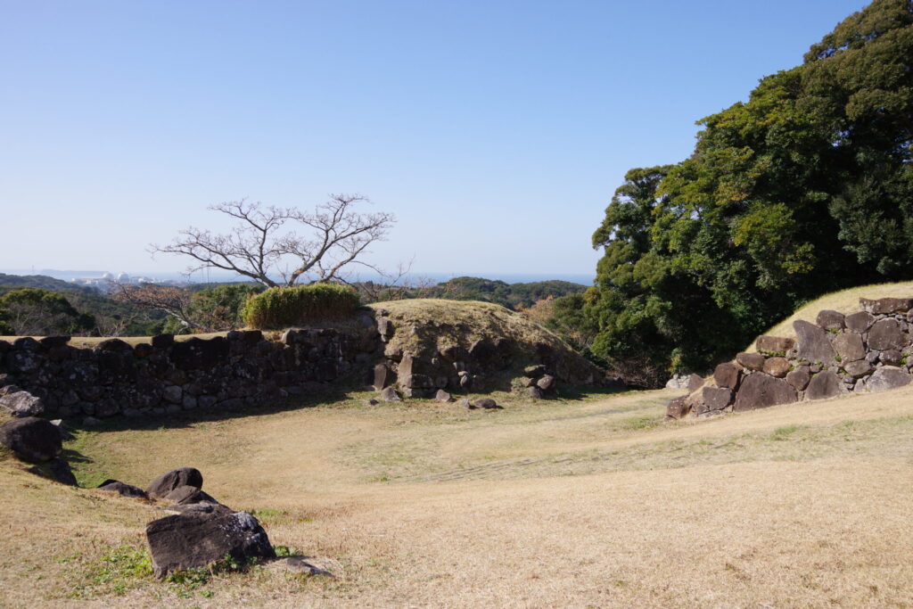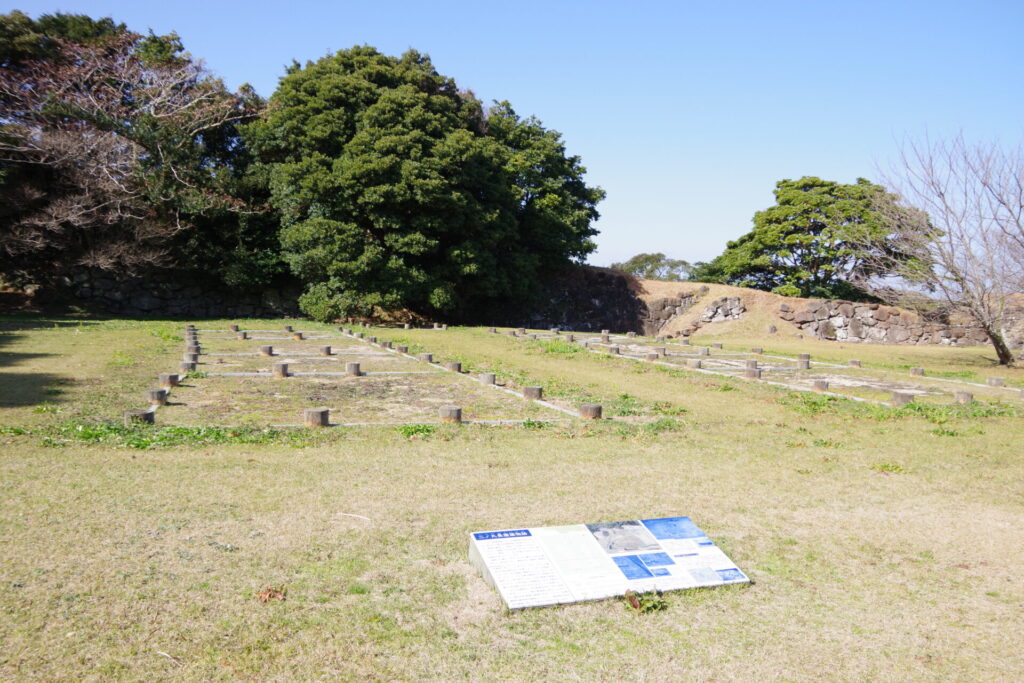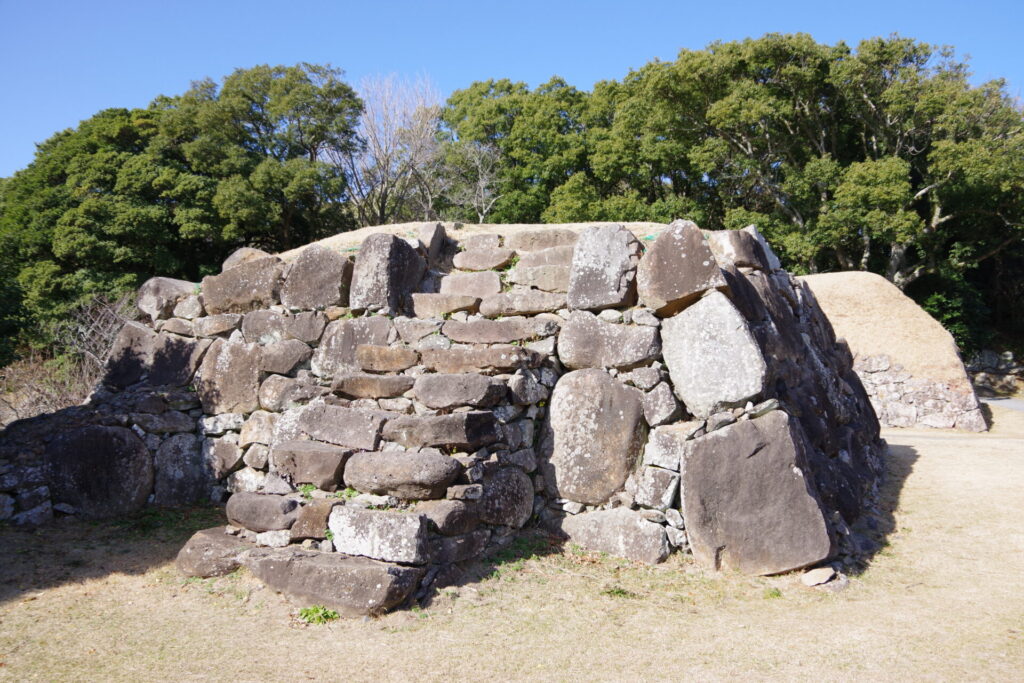 また、櫓の周囲の通路部分には、玉石も敷かれていました。現在は、当時の玉石を保護するために埋め戻し、その上に復元した状態で整備を行っています。