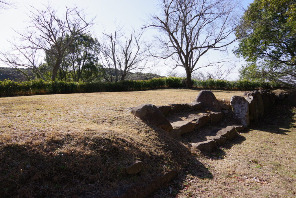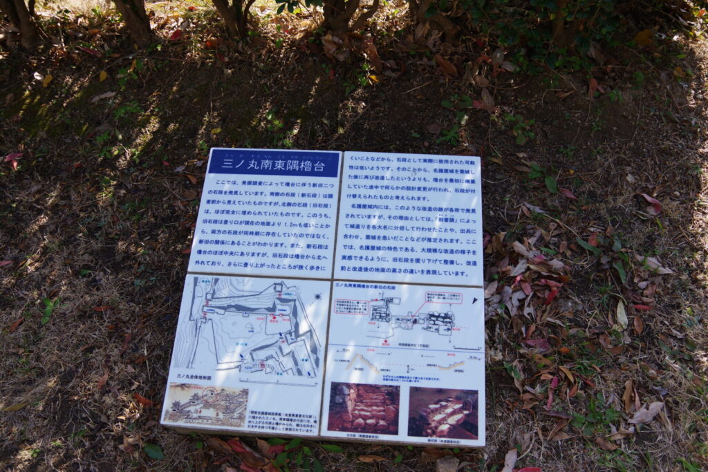 また、新石段は櫓台のほぼ中央にありますが、旧石段は櫓台から北へ外れており、さらに登り上がったところが狭く歩きにくいことから、石段として実際に使用された可能性は低いようです。そのことから、名護屋城を築城した後に再び改造したというよりも、櫓台を最初に構築した後に再び改造したというよりも、櫓台を最初に構築していた途中で何らかの設計変更が行われ、石段が付け替えられたものと考えられます。