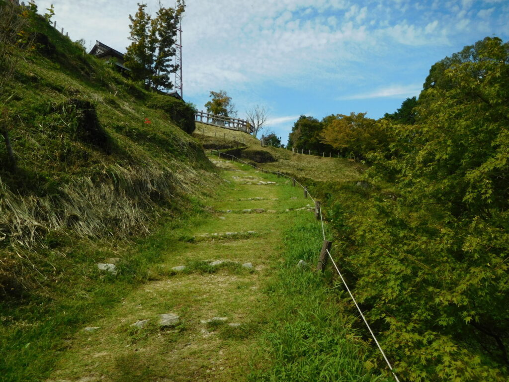 矢倉の上から南方に鶏足城を望むことができます。鶏足城への連絡を兼ねた矢倉だったのでしょう。