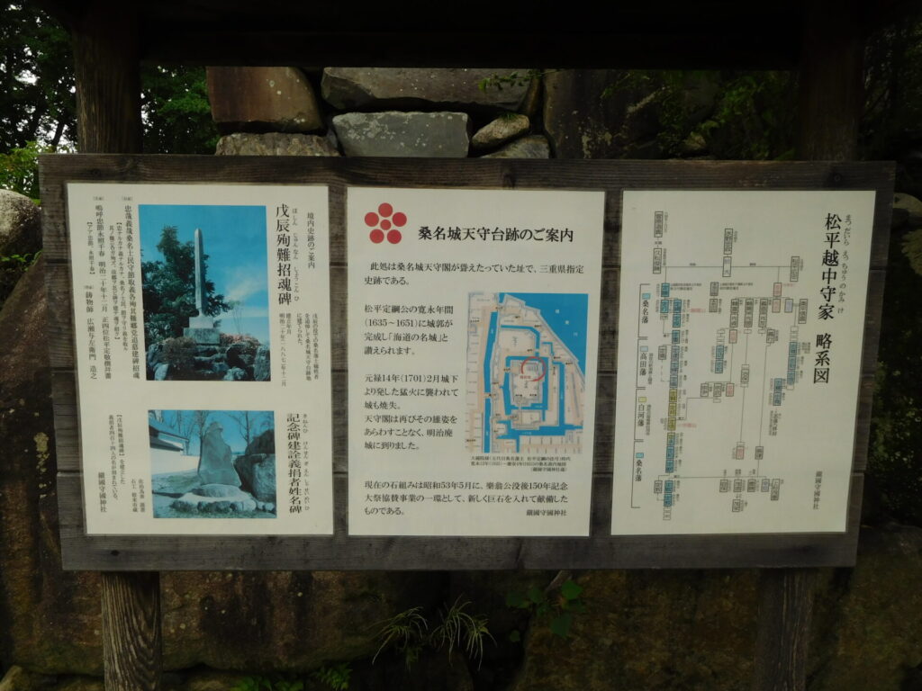此処は桑名城天守が聳えたっていた址で、三重県指定史跡である。松平定綱公の寛永年間(1635~1651)に城郭が完成し「海道の名城」と讃えられます。元禄14年(1701)2月城下より発した猛火に襲われて城も焼失。天守は再びその雄姿をあらわすことなく、明治廃城に到りました。