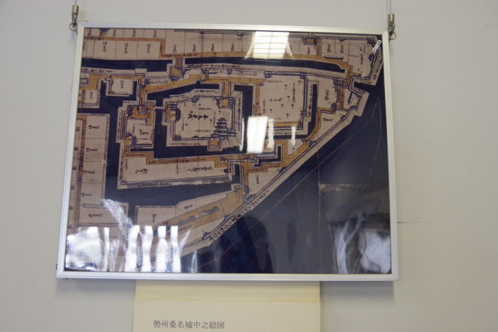 通称「正保城絵図」と呼ばれるもので、3代将軍家光が将軍の力を示すため、全国の大名に実測を書き入れて提出を命じたものである。桑名は5代目藩主松平定綱の時代で、4層の天守を擁し、揖斐川沿には石垣と櫓が連なり「海道の名城」と讃えられた様子がうかがえる。蟠龍櫓も描かれており、この櫓の復元はこの絵図を参考としている。