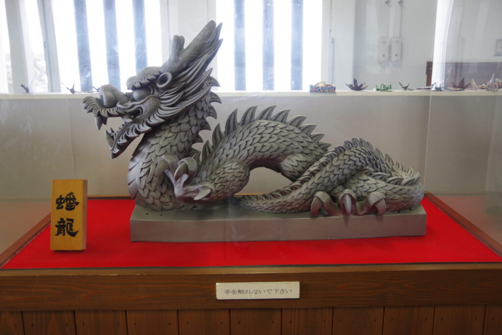 「蟠龍」とは、天に昇る前のうずくまった状態の龍のことです。龍は水を司る聖獣として中国では寺院や廟などの装飾モチーフとして広く用いられています。蟠龍櫓についても、航海の守護神としてここに据えられたものと考えられます。