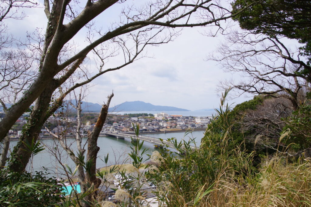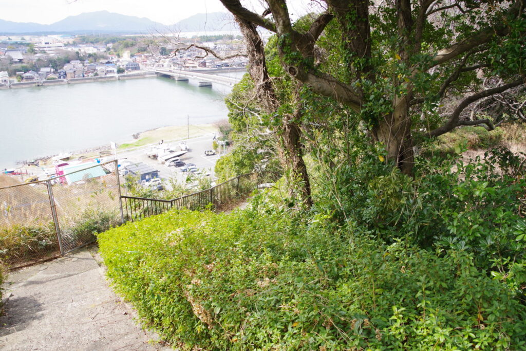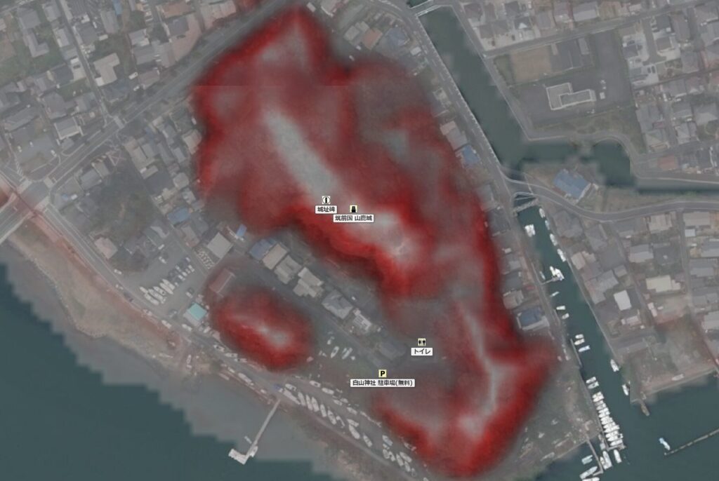 遠賀川河口西岸の城山に築かれた平山城。平安末期の山鹿秀遠の居城として知られ、壇ノ浦の戦いでは平家方の拠点となった。戦国期には麻生氏の居城となり、大友氏や毛利氏の争奪戦が展開された。現在は公園となり遺構は僅か。